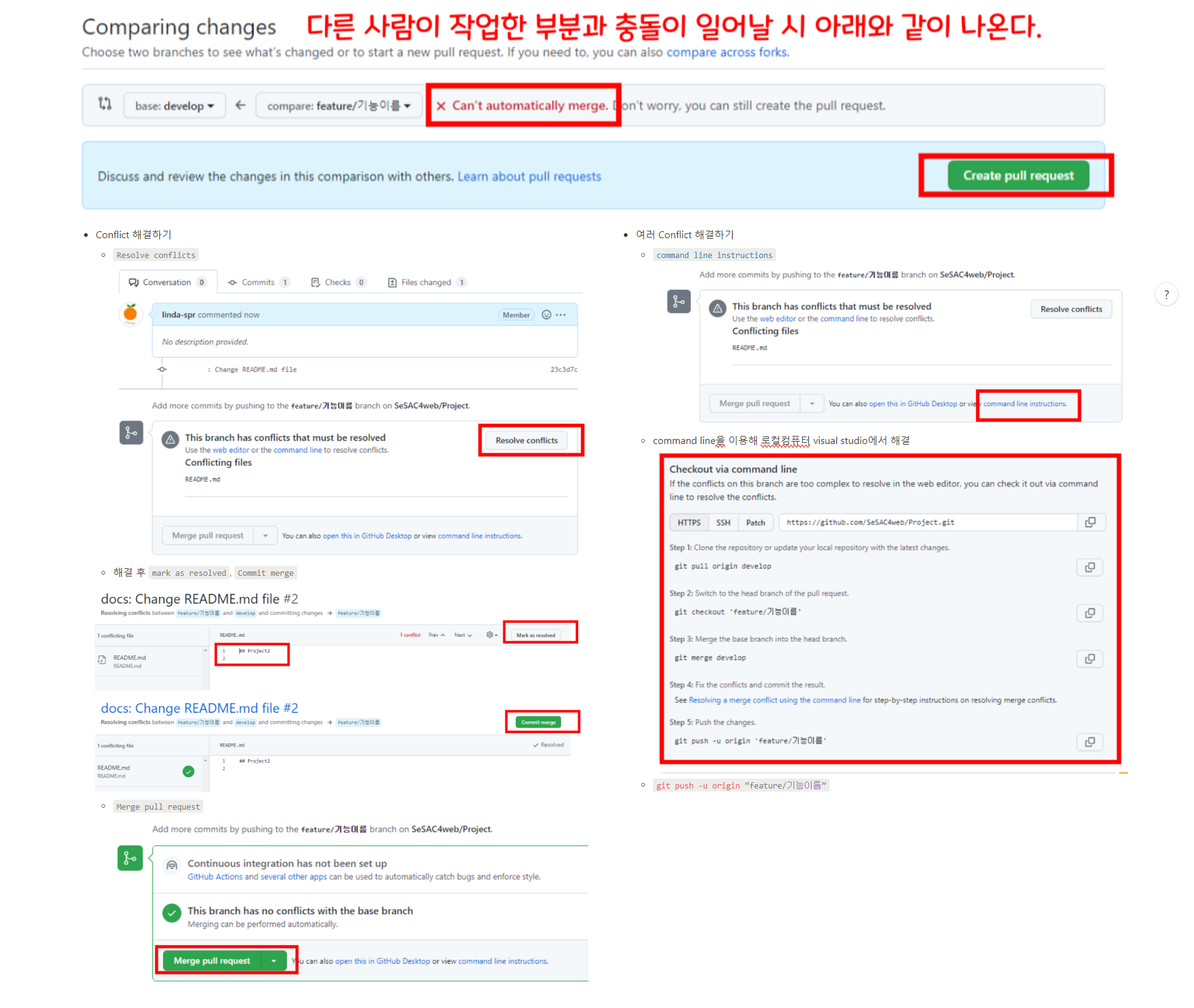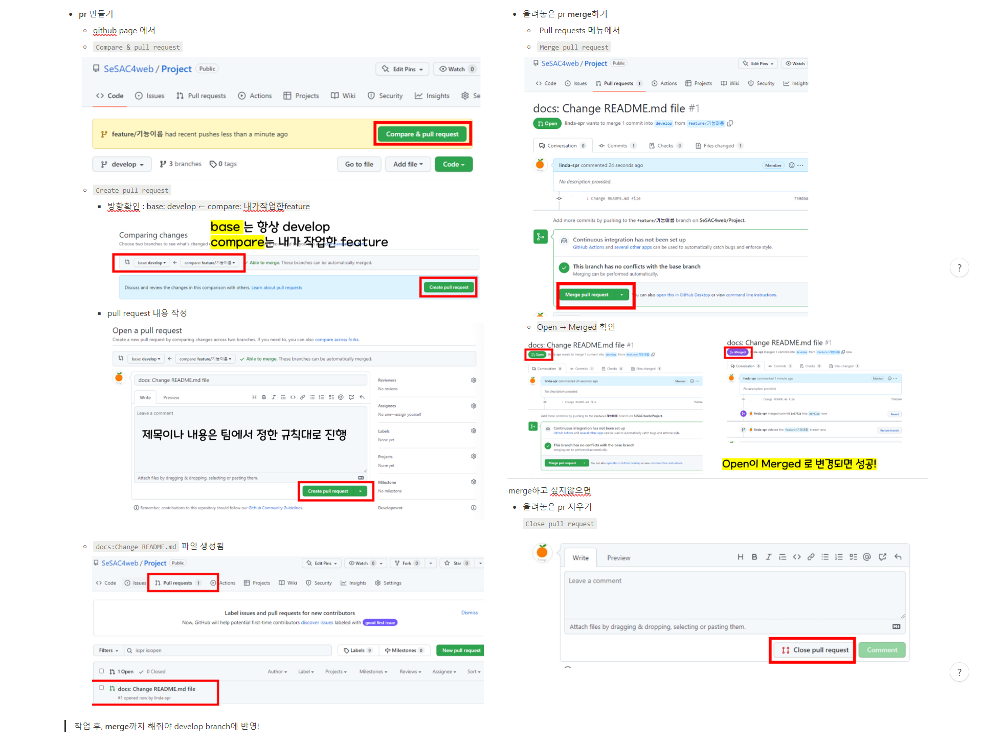 6. Github 페이지에서 feature을 develop으로 MERGE