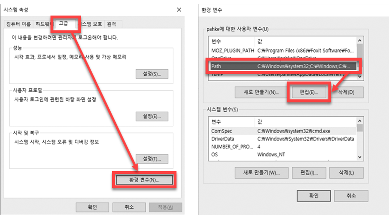- 명령 프롬프트(cmd)를 재시작해야한다. (변경된 환경 변수 PATH 반영을 위해)