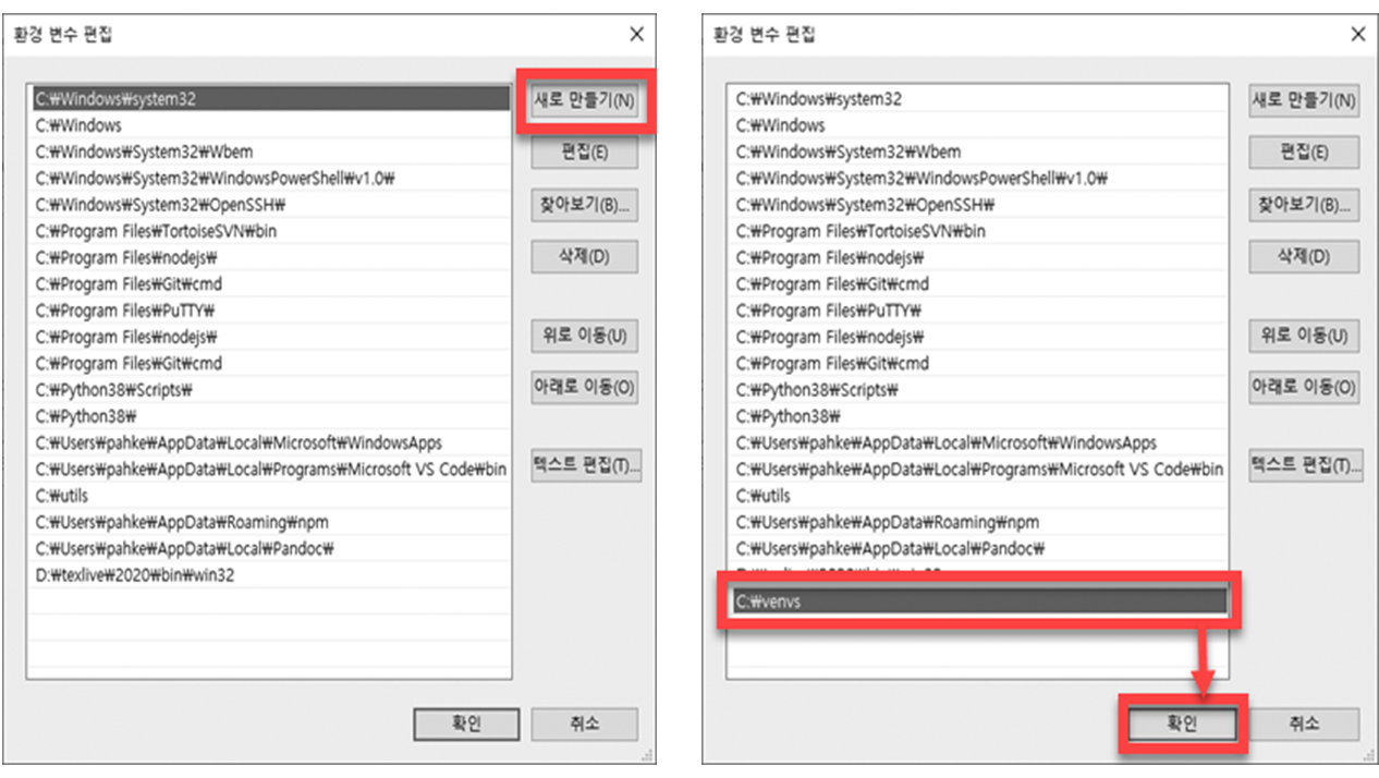 - C:/venvs 디렉터리를 시스템의 환경 변수 PATH에 추가해야 한다.