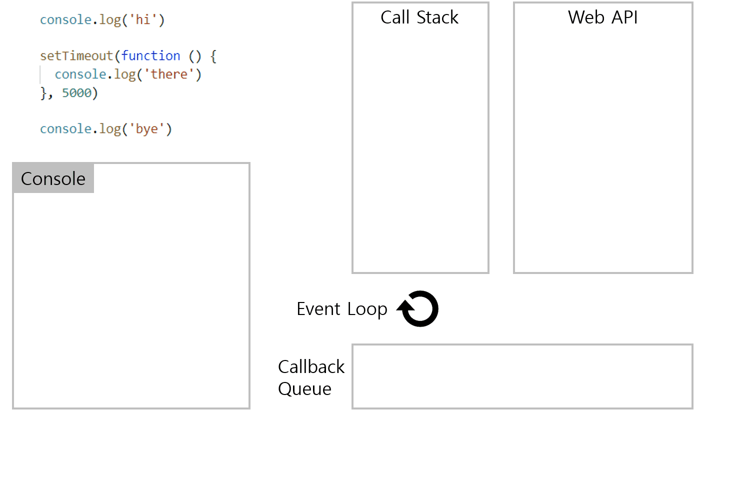 - Event Loop : call stack이 다 비워지면 callback queue에 존재하는 함수를 하나씩 call stack으로 옮기는 역할을 한다.